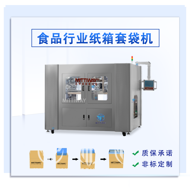 食品行业食品箱套袋机 MTW-T50S是一款针对食品行业特殊包装定制的一款全自动套袋机,该机型根据产品的特性采用特殊性采用特殊材料工艺加工,可有效的避免因封刀长时间工作而引起的封口不牢固。整机采用304不锈钢材质加工工艺,可有效的保存设备的清洁、避免产品污染,且外形美观、经久耐用。